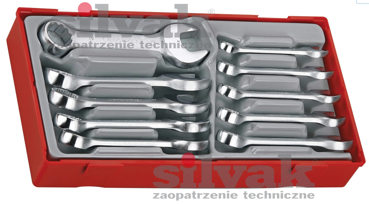Teng Tools TT6010M to zestaw 10 krótkich kluczy płasko‑oczkowych typu „Stubby”, wykonanych ze stali chromowo‑wanadowej. Dzięki kompaktowej konstrukcji klucze doskonale sprawdzają się w pracy w ograniczonych przestrzeniach. Każdy klucz posiada dwunastokątną główkę pierścieniową odgiętą pod kątem 15°, co ułatwia użycie na płaskich powierzchniach. Zestaw dostarczany jest w praktycznym pojemniku z odłączaną pokrywą, pasującym do skrzynek i wózków Teng Tools.