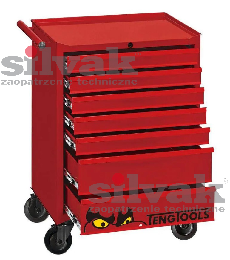 Szafka wykonana z grubej stali posiada 7 szuflad o udźwigu 30 kg każda, centralny zamek oraz wytrzymałe kółka z hamulcem. To trwałe i mobilne rozwiązanie, które sprawdzi się w każdym warsztacie.