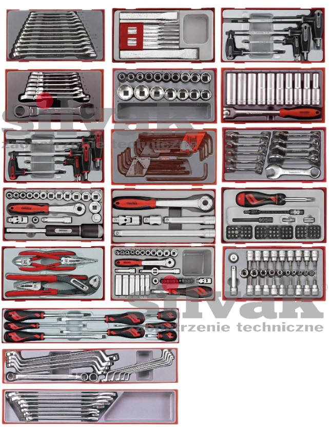 Szczegółowy opis narzędzi wchodzących w skład wózka znajduje się w zakładce "Produkty Powiązane" powyżej