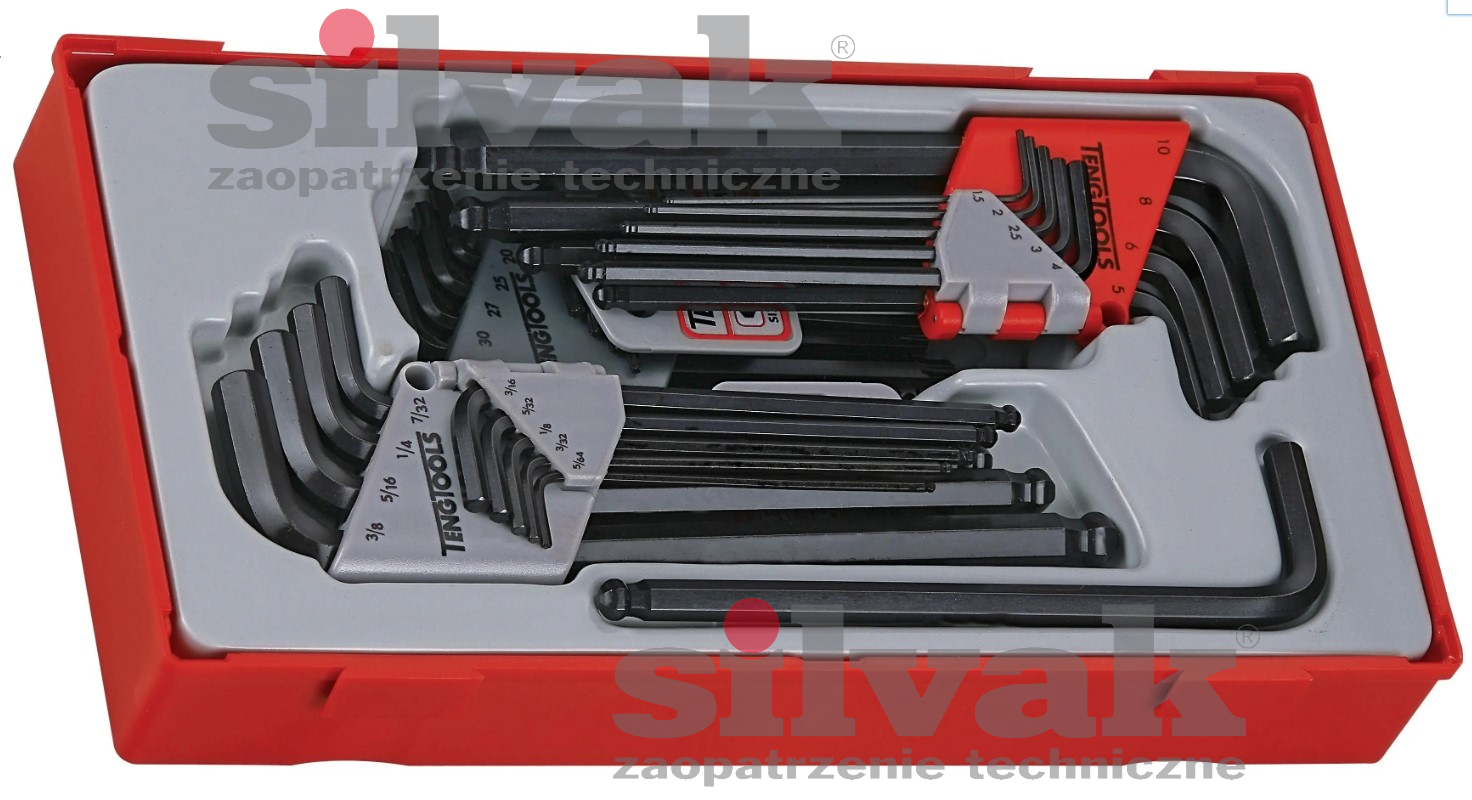 28 elementów – klucze sześciokątne metryczne, calowe oraz Torx