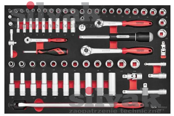 Teng Tools TTESK73 to profesjonalny zestaw 73 narzędzi nasadowych, idealny do prac warsztatowych, serwisowych i przemysłowych. Zawiera trzy grzechotki 72‑zębowe (1/4", 3/8" i 1/2"), szeroki wybór nasadek metrycznych (6‑kątne i 12‑kątne, standardowe i głębokie) oraz bogaty zestaw przedłużek, przegubów i adapterów. Elastyczna rękojeść 1/2" o długości 450 mm zapewnia dodatkowy moment obrotowy przy trudniejszych zadaniach. Całość umieszczona jest w module FOAM4X4 z pianką EVA o wysokiej gęstości, zgodnym z systemem kontroli narzędzi Teng Tools.